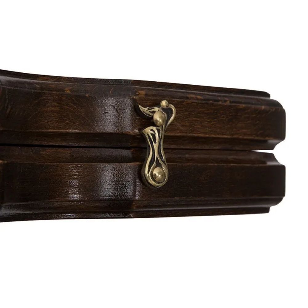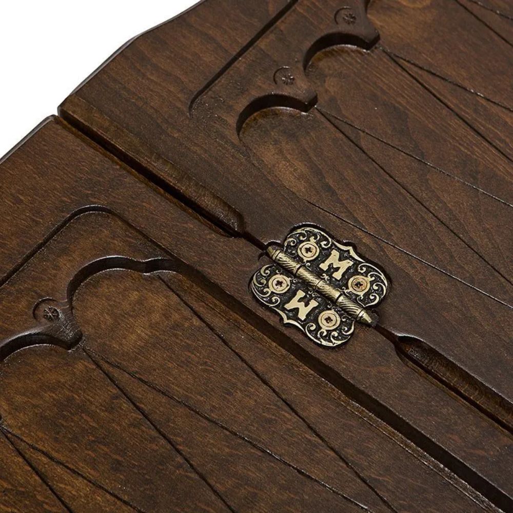 Нарды хранятся в закрытом виде, а для игры необходимо их открыть, причем этот процесс повторяется часто. Бронза, которая была выбрана в качестве материала для изготовления петель, способна выдерживать многочисленные повторения. Из нее же выполнены крючки, которые будут удерживать створки в закрытом состоянии, и не позволят фишкам и костям, хранящимся внутри, выпасть.