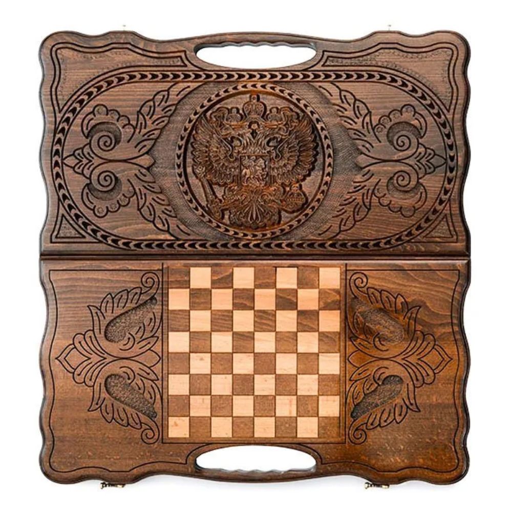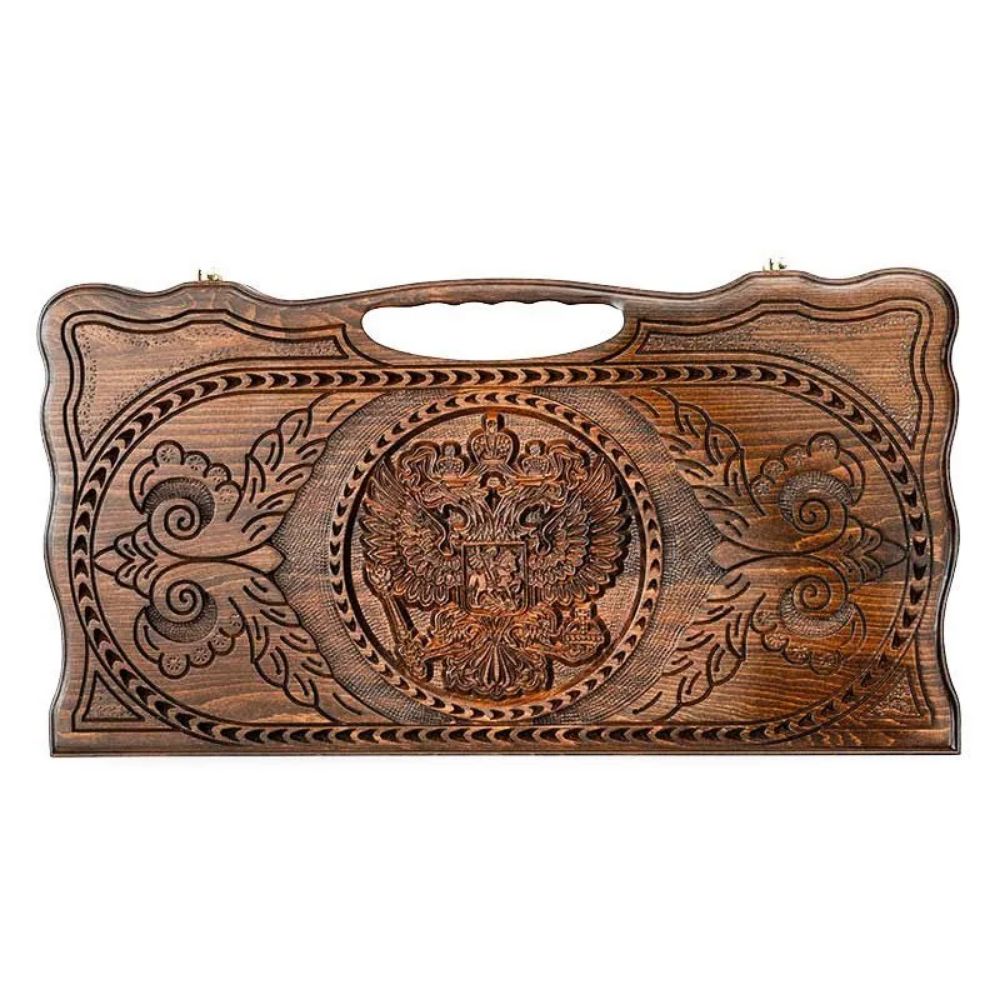 Нарды резные "Герб РФ 2" с ручкой 60, Haleyan