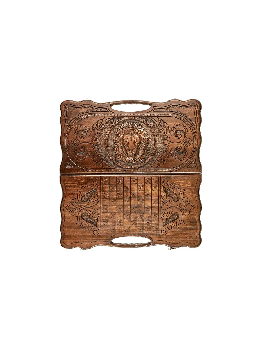 Нарды резные "Лев 2" с ручкой 60, Haleyan