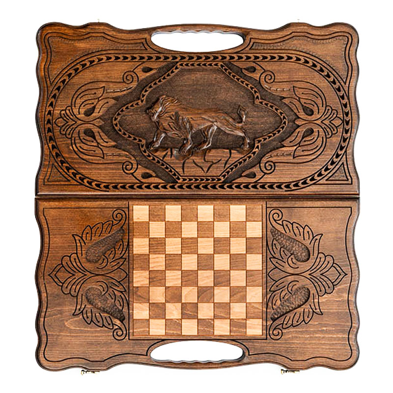 Нарды резные "Лев 3" с ручкой 60, Haleyan