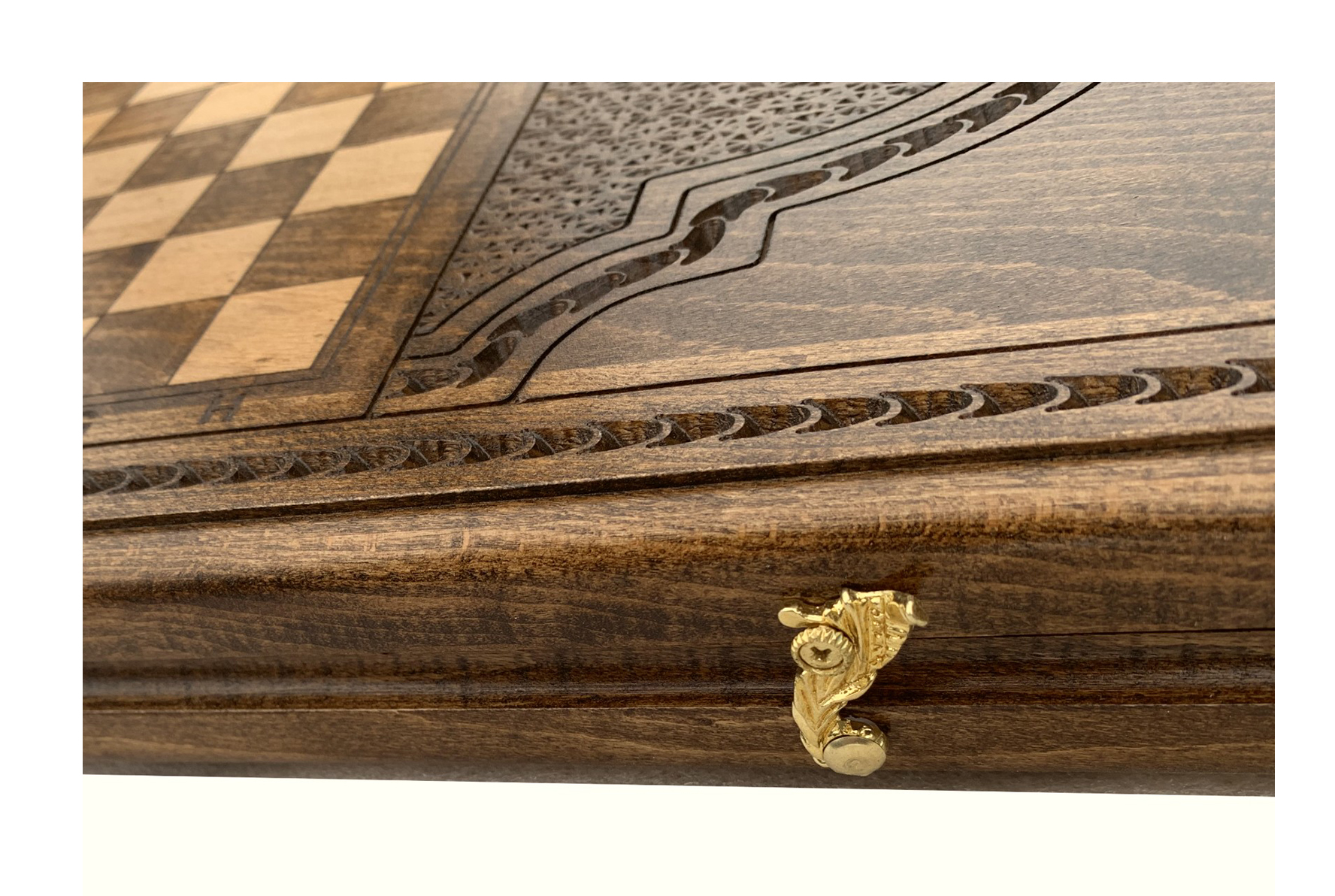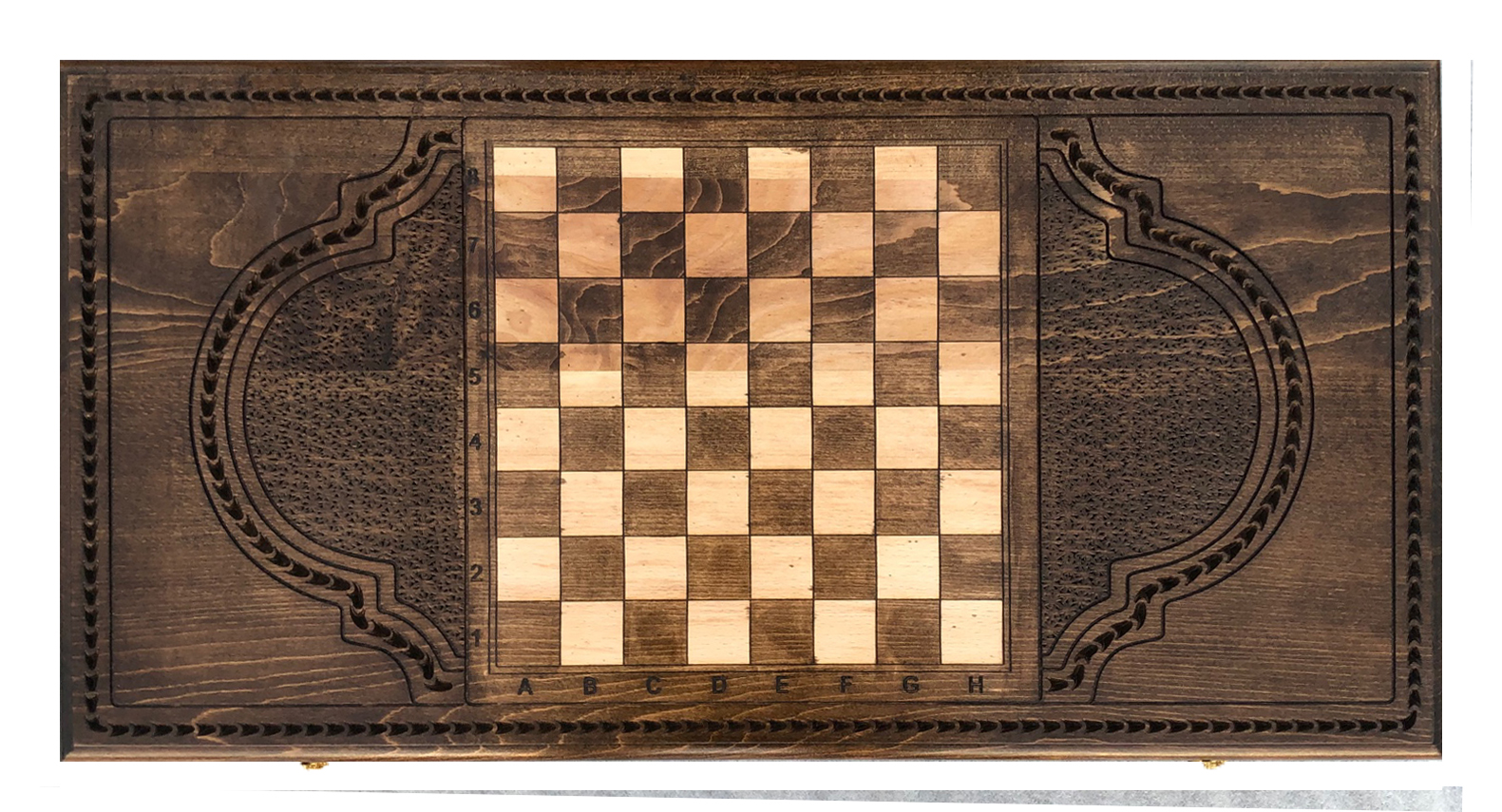 Резные нарды «Лошадь 2», выполненные из натуральной буковой древесины - оригинальный подарочный набор классических настольных игр, состоящий из нард и шашек, поле для которых нанесено на задней стороне доски.