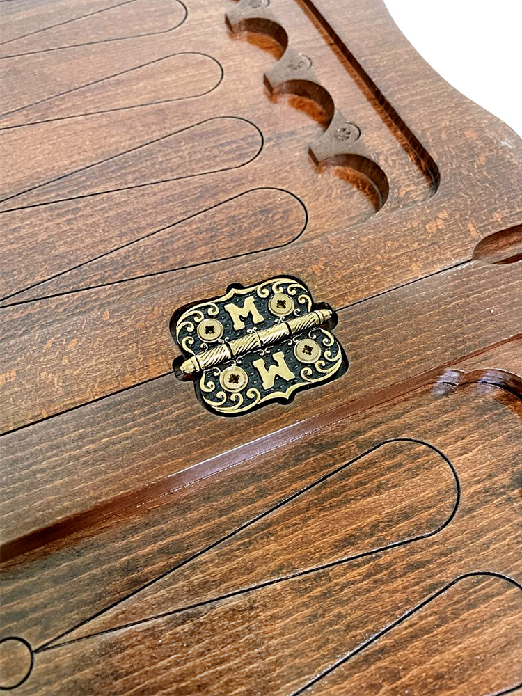 Даже петлям и крючкам было уделено немалое внимание. Петли изготавливаются из бронзы, которая, благодаря природной мягкости, выдерживает многочисленные циклы открывания. Использована привлекательная форма, напоминающая крылья бабочки, покрытые изысканным мелким узором и эмблемой производителя по центру. Крючки тоже бронзовые и похожи на те, которые использовались в старинных комодах, стоящих при царском дворе.