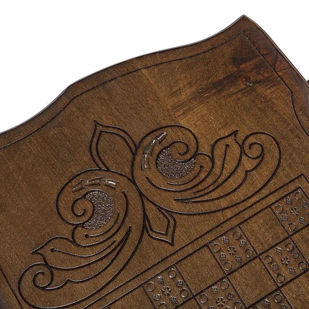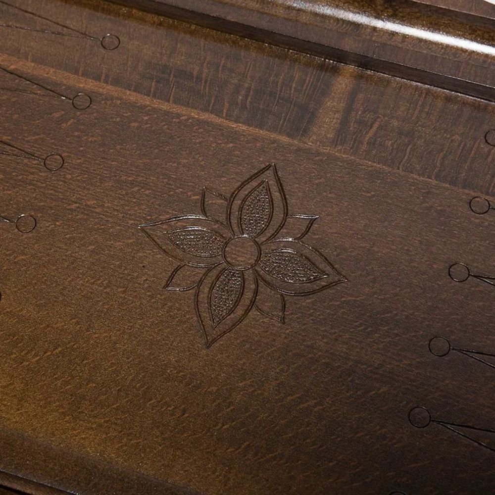 Изнутри всё также привлекательно - в центре красуется цветок, опять же вырезанный ручным способом, а каждая отдельная ячейка подчеркивается треугольником. Мастер постарался и сумел сделать так, чтобы владельцы смогли получать удовольствие не только от самого процесса игры, но и от внешнего вида.