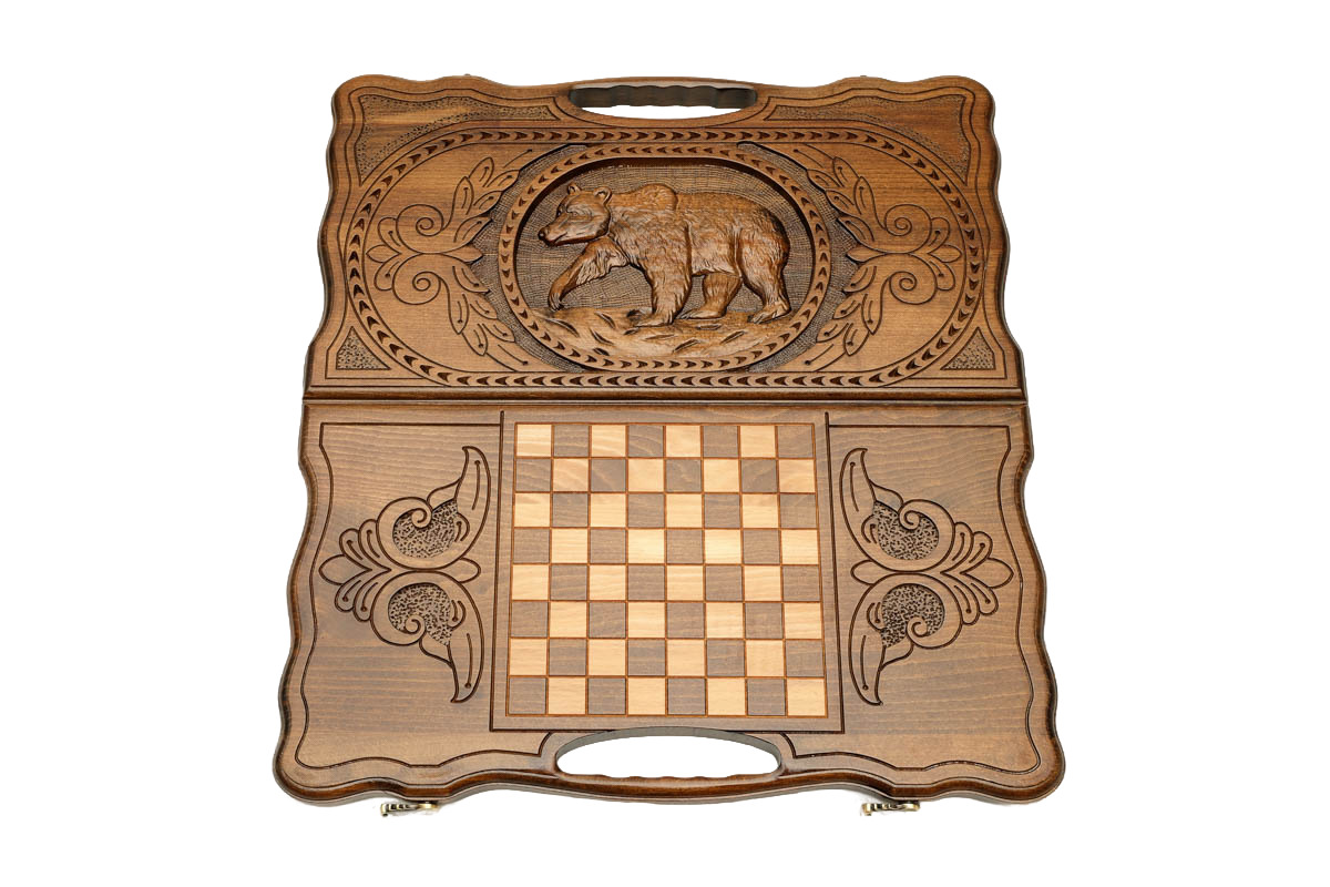 Нарды резные "Медведь" с ручкой 50, Haleyan