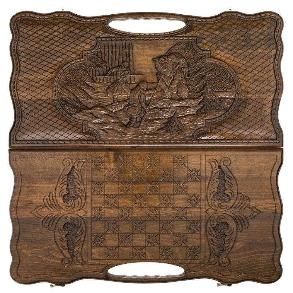 Нарды резные "Охота на медведя" с ручкой 60, Haleyan