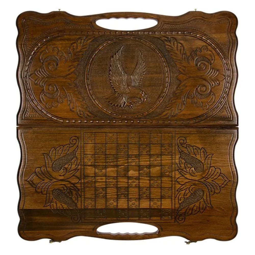 Нарды резные "Орел 2" с ручкой 60, Haleyan