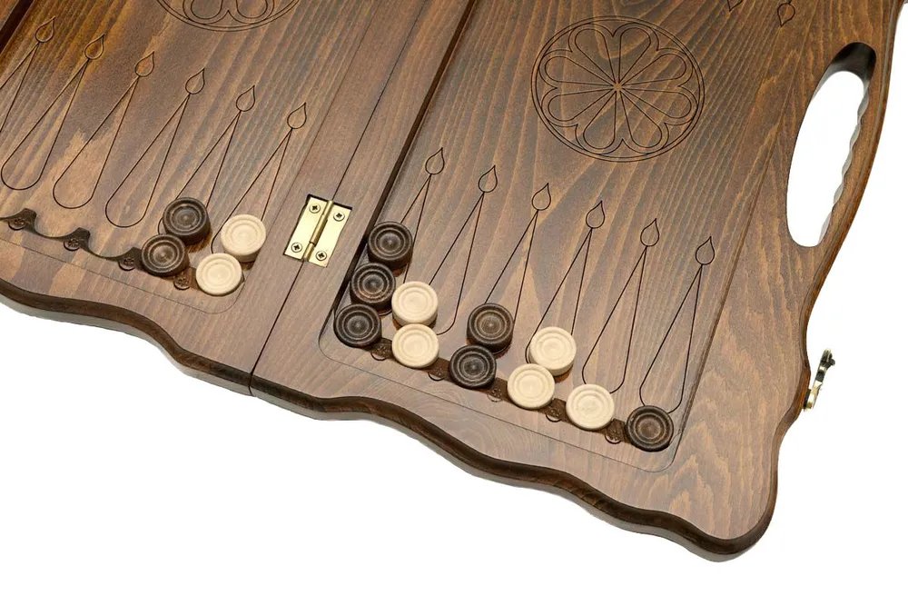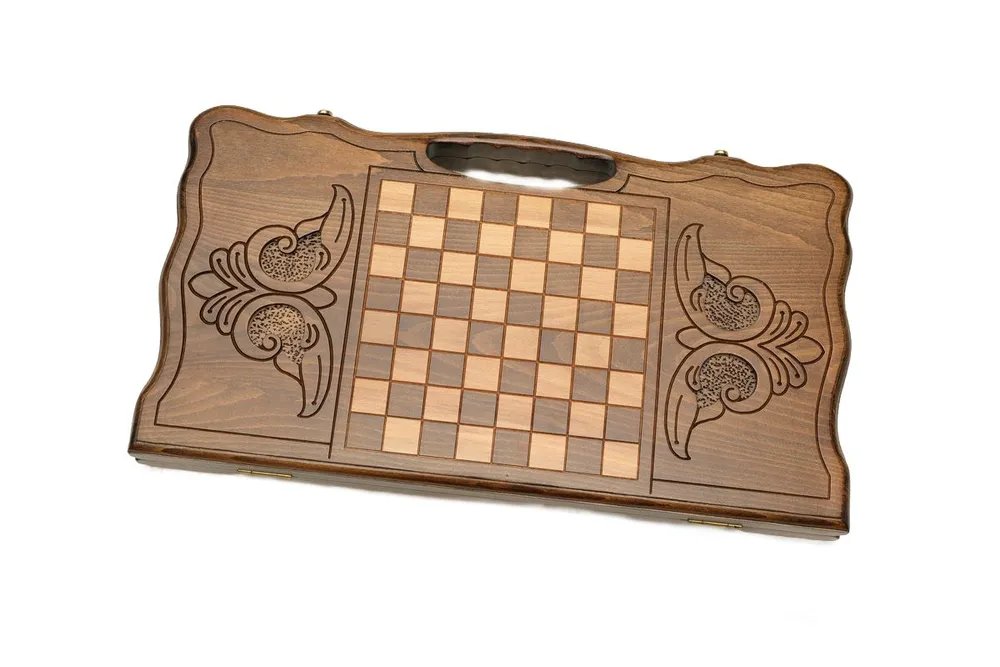 С обратной стороны доски, вырезана голова орла, причем в настолько мельчайших подробностях, что кажется, будто он сейчас оживет. Повсюду нанесены интересные восточные узоры, что придает еще больше «богатства» нардам резным Орел от известного мастера. Также здесь есть поле для игры в шашки, чтобы вы могли отвлечься от нард.