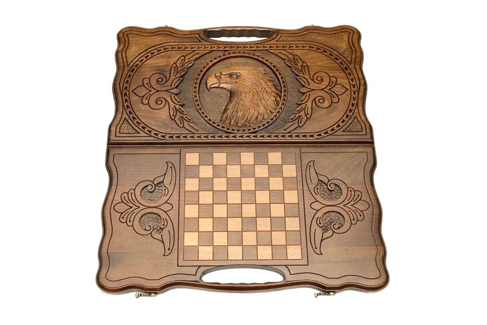 Нарды резные "Орел" с ручкой 50, Haleyan
