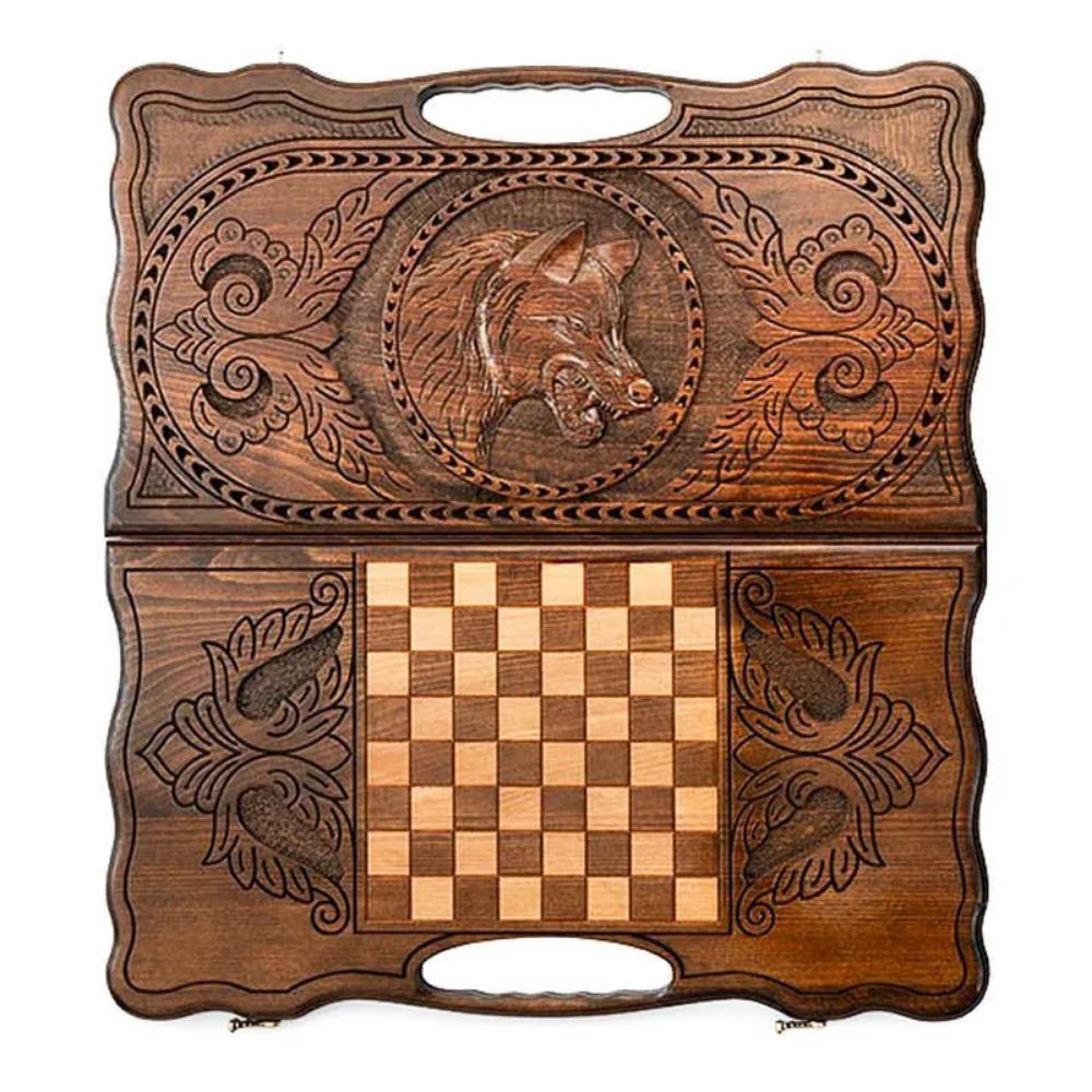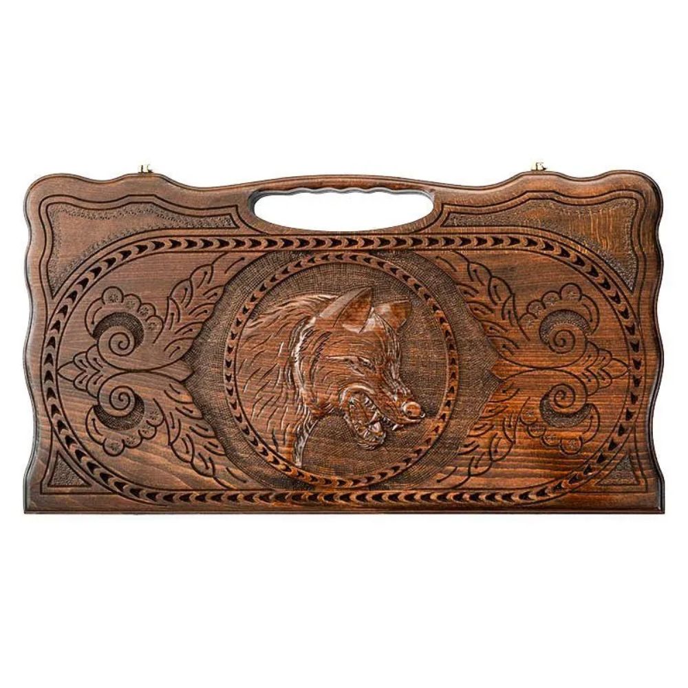 Нарды резные "Волк" с ручкой 60, Haleyan