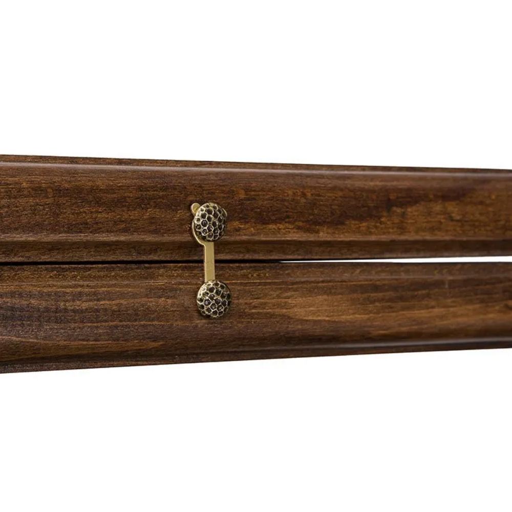 Петли сделаны из мягкой бронзы, а отливаются они в форме крыльев бабочки, а украшается при помощи нескольких колец, распространяющихся из средней части. Крючок также бронзовый, и крепится при помощи круглых вставок, напоминающих пчелиные соты.