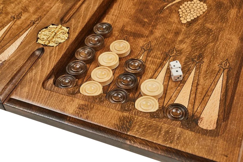 Подарочный набор классических настольных игр 3-в-1, состоящий из нард, шашек и шахмат - великолепный комплект, который порадует каждого поклонника этого типа развлечений. Изделие выполнено из настоящей буковой древесины. Доска, украшенная резными изящными узорами, и другие элементы набора покрыты защитным лаком, который подчеркивает фактуру дерева и защищает от появления потертостей и царапин. Также надежную защиту от них гарантируют подложки, прикрепленные к каждой фишке и фигуре.
